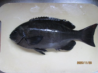 | 2025年11月29日、メジナ、尾又長35cm 静浦堤防、ウキフカセ
